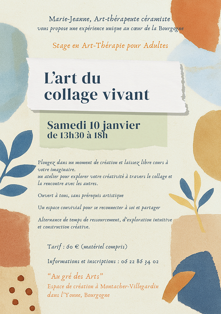 L’atelier d’art-thérapie avec Marie-Jeanne a été une belle expérience créative, humaine et personnelle. Marie-Jeanne est très à l’écoute, pendant toute la durée de l’atelier. Elle veille au bon déroulement des activités, et à l’harmonie au sein du groupe. J’ai bien aimé le bon dosage entre les activités en solo et en groupe, ainsi que les temps d’échange. Un vrai plus : son lieu est enchanteur ! Un grand merci à toi Marie-Jeanne !
